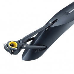 Błotnik tylny DeFender™ XC11-29″ został specjalnie zaprojektowany dla rowerów 29″, ale pasuje również do kół 27,5″. Dzięki systemowi QR instaluje się i zdejmuje w ciągu kilku sekund, kilka piwotów zapewnia precyzyjne ustawienie dla lepszej ochrony przed błotem. Sztywna, lekka konstrukcja jest odlewana z elastycznego materiału dla lepszej trwałości, a gładki błyszczący spód zapobiega gromadzeniu się brudu i ułatwia czyszczenie.