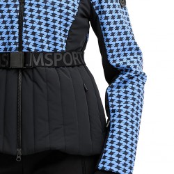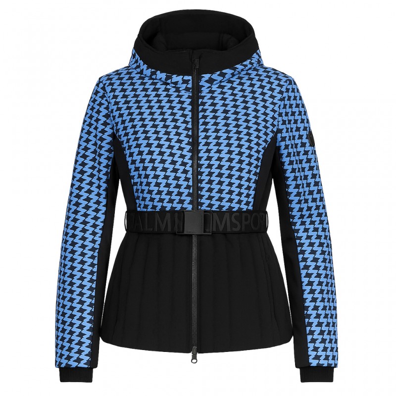 Kurtka SPORTALM Frankfurt Print to idealne połączenie funkcjonalności i stylu na stoku. Ta ocieplana kurtka narciarska z kapturem została zaprojektowana, aby podkreślić kobiecą sylwetkę, a elegancki pasek w talii sprawia, że jest nie tylko praktycznym, ale i stylowym towarzyszem na nartach. Wykonana z softshellu w połączeniu z materiałem narciarskim, gwarantuje dopasowanie do sylwetki i komfort noszenia. Ekskluzywny wzór z logo Sportalm nadaje jej unikalny charakter. Stały kaptur z nadrukiem Sportalm oraz długie rękawy z mankietami i otworami na kciuki zapewniają dodatkową ochronę przed zimnem. Kurtka jest zapinana na zamek błyskawiczny i posiada kieszenie z zamkiem, co podnosi jej funkcjonalność. Dynamiczne szwy i ozdobne przeszycia dodają jej sportowego i nowoczesnego wyglądu.