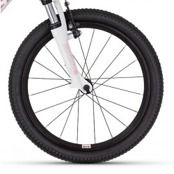 Rama z aluminium zapewnia lekkość i wytrzymałość, co jest szczególnie ważne dla dynamicznych młodych rowerzystów. Dzięki temu rama jest odporna na uszkodzenia, a jednocześnie nie obciąża nadmiernie dziecka. Widelec SR Suntour M3010 amortyzuje nierówności terenu, zapewniając płynniejszą jazdę i większy komfort. Dzięki niemu, młoda pociecha może swobodnie przemierzać zarówno miejskie ścieżki, jak i lekkie szlaki leśne. Przerzutki Shimano gwarantują precyzyjne i płynne zmiany biegów, dostosowując je do różnorodnych warunków jazdy. To oznacza, że dziecko będzie mogło łatwo pokonać zarówno płaskie odcinki, jak i delikatne podjazdy.