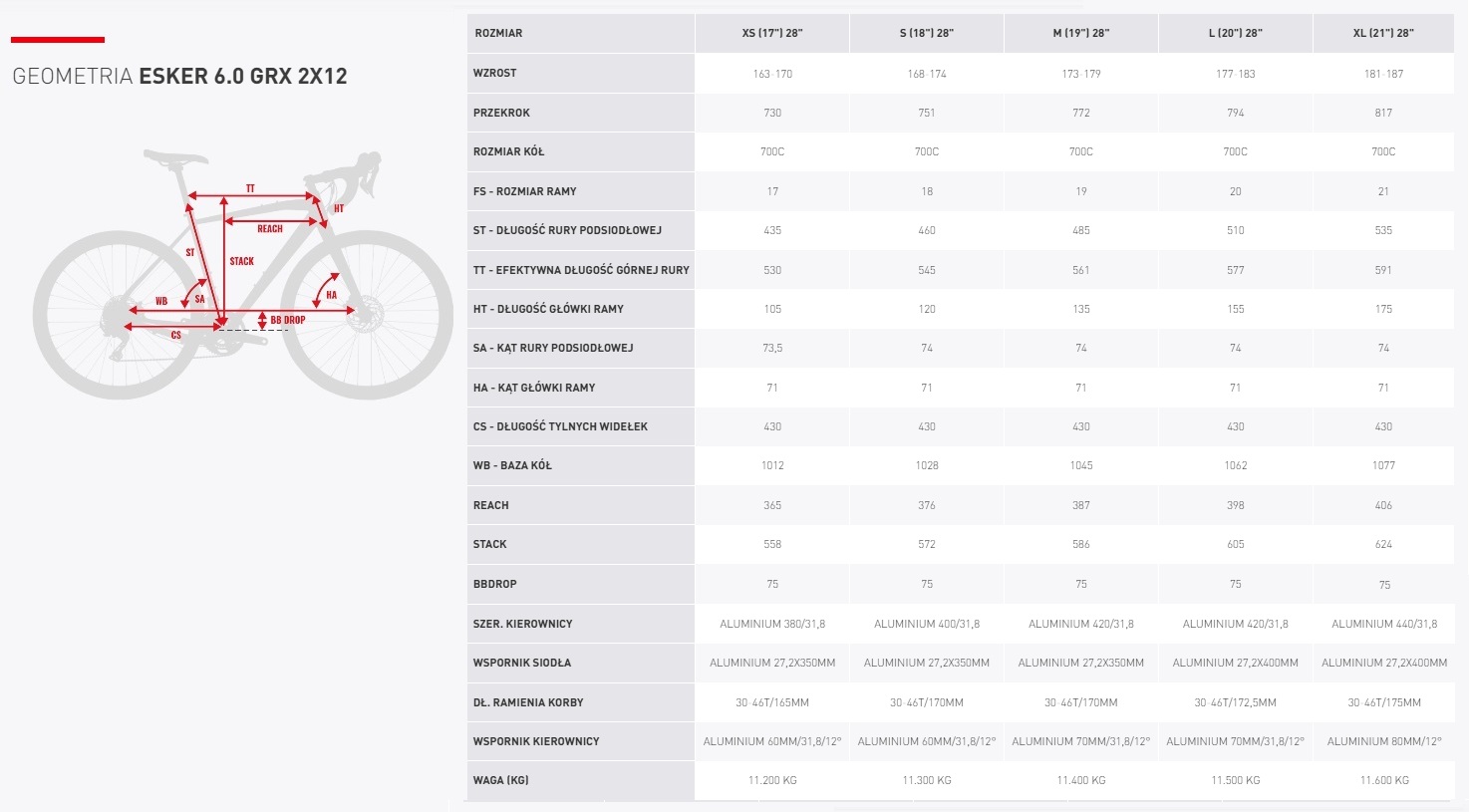 Precyzyjny i niezawodny napęd Shimano GRX z szerokim zakresem przełożeń 2 x 12 zapewnia płynną zmianę biegów w każdych warunkach. Bezpieczne i modulowane hamowanie to zasługa hydraulicznych hamulców Shimano GRX, które dają Ci pełną kontrolę nad rowerem, niezależnie od pogody i nawierzchni. Karbonowy widelec doskonale tłumi wibracje, zwiększając komfort jazdy na nierównościach i poprawiając precyzję prowadzenia. Wytrzymałe koła DT SWISS G w połączeniu z szerokimi oponami gravelowymi WTB Riddler Comp zapewniają doskonałą trakcję i przyczepność na szutrze, piasku i asfalcie. Komfortową jazdę nawet podczas wielogodzinnych wypraw gwarantuje ergonomiczne siodełko, a liczne mocowania pozwalają na montaż bagażników i bidonów, czyniąc z Eskera 6.0 idealnego kompana na bikepackingowe eskapady.