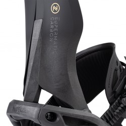 Highback Carbon S Ultraback – asymetryczne oparcie z pełnego karbonu, zapewnia perfekcyjnie dopasowane do anatomicznego kształtu łydki, zapewnia błyskawiczny transfer mocy z pięty na krawędź. Ultralekka nowa płyta Baseplate Carbon Auto zapewnia doskonałą sztywność i przenoszenie energii. Paski wykorzystują ten sam wygodny materiał AuxTech jak tradycyjne wiązania. Górny pasek Ankle strap Exo-Kush Pro S jest lekki, komfortowy i doskonale dopasowany, z pianką EVA i konstrukcją 3D zaś Toe strap Hexo Toecap z AuxTech to elastyczna, „pajęcza” struktura, która oplata czubek buta i trzyma go pewnie niezależnie od kształtu. Klamry LSR 2.0 Auto-Lock Carbon – mocne i precyzyjne, pozwalają na tradycyjne lub automatyczne zapinanie. Nidecker Supermatic Carbon najbardziej zaawansowane wiązania snowboardowe z systemem automatycznego wchodzenia, stworzone dla riderów, którzy oczekują maksymalnej reaktywności, sztywności i wygody.